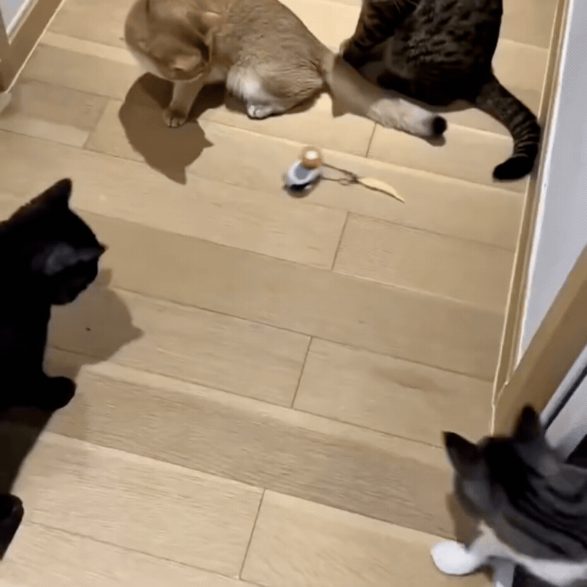 1️⃣ Smart Mode: Flip the switch and the automatic cat toy starts running free, triggering your cat's instinct to chase and pounce on moving prey.