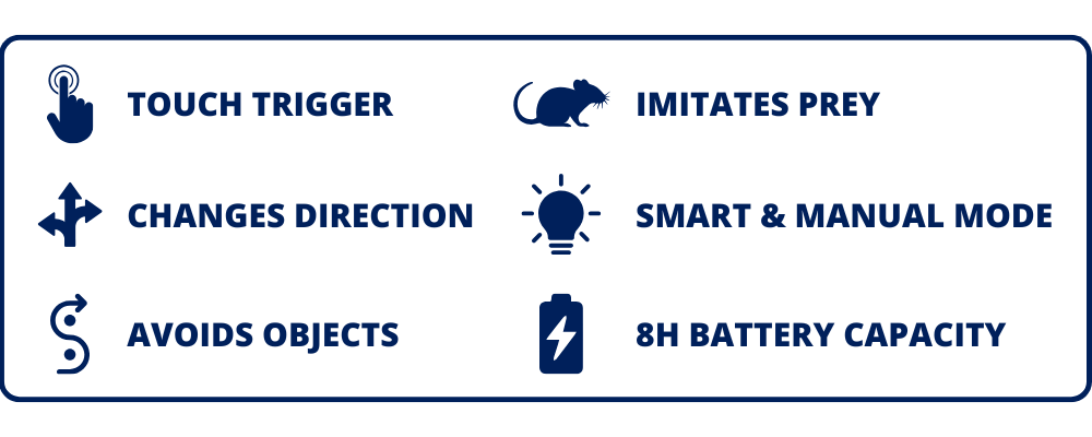 This toy mimics the thrill of the chase, with unpredictable motions that encourage your cat to pounce, hunt, and play.
